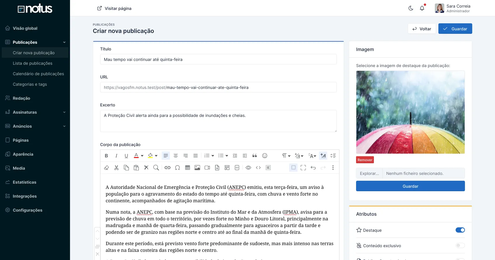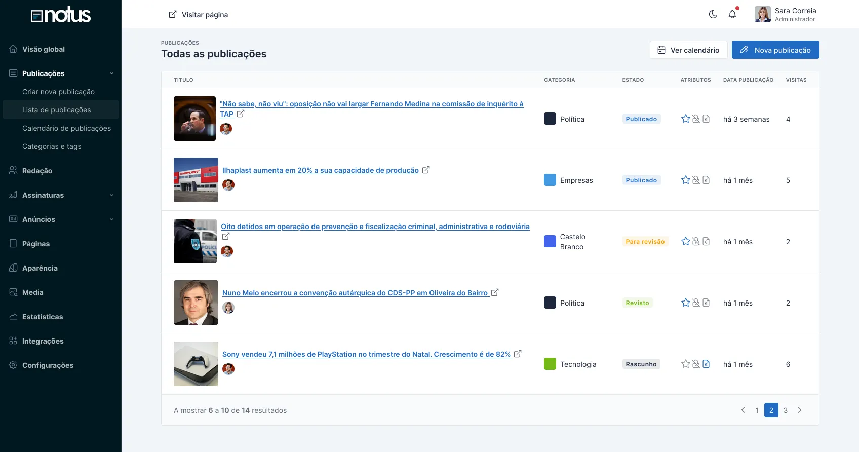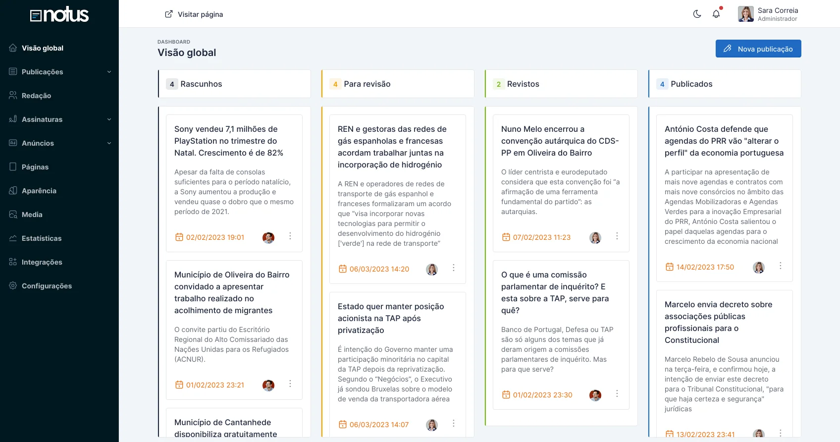 A nossa plataforma proporciona uma forma eficiente de organizar os seus artigos através de diferentes fases. Com a nossa interface intuitiva e de fácil utilização, poderá agilizar o seu processo de publicação de notícias e concentrar-se na criação de conteúdos de qualidade. Colabore com a sua equipa e publique quando estiver pronto.